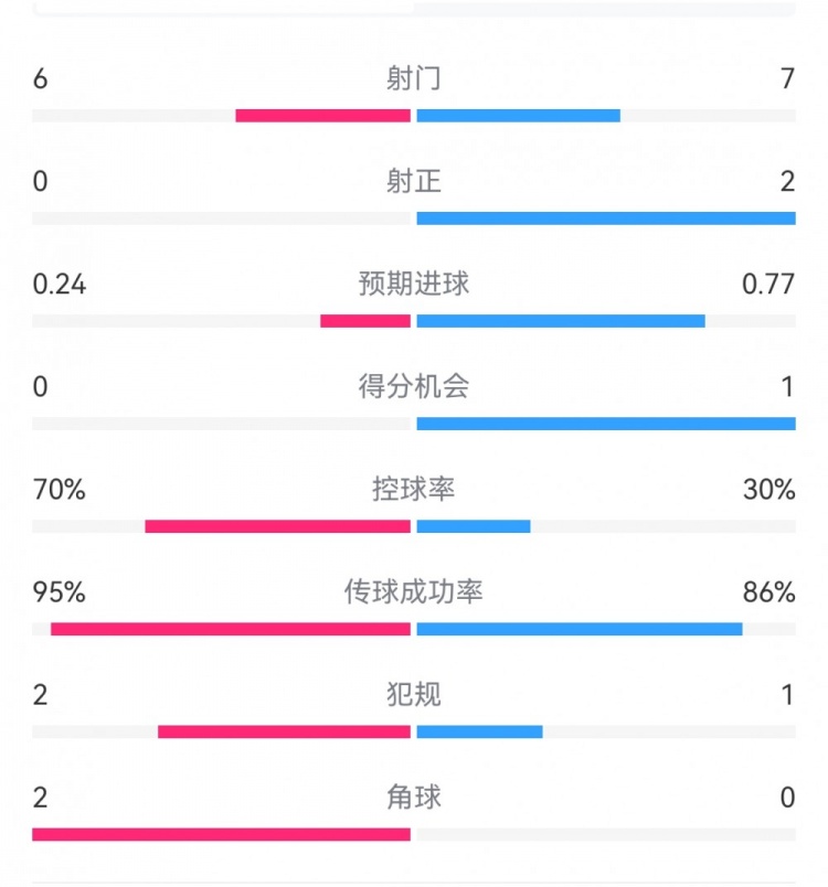 1月30日訊 歐冠末輪,曼城半場0-1落后布魯日,若不勝曼城將被淘汰。雙方半場重點數(shù)據(jù)對比如下↓(主隊曼城在前,客隊布魯日在后)射門6-7射正0-2預(yù)期進球0.24-0.77得分機會0-1控球率70%-30%傳球成功率95%-86%犯規(guī)2-1角球2-0 本文標簽: 足球 歐冠 英超 曼城
