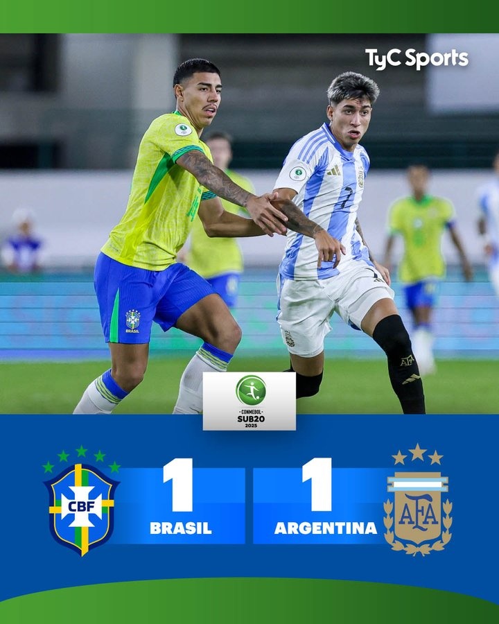 2月14日訊 今天早晨,阿根廷U20在南美U20青少年錦標(biāo)賽決賽輪中1-1戰(zhàn)平巴西U20,賽事將在最后一輪決出冠軍。