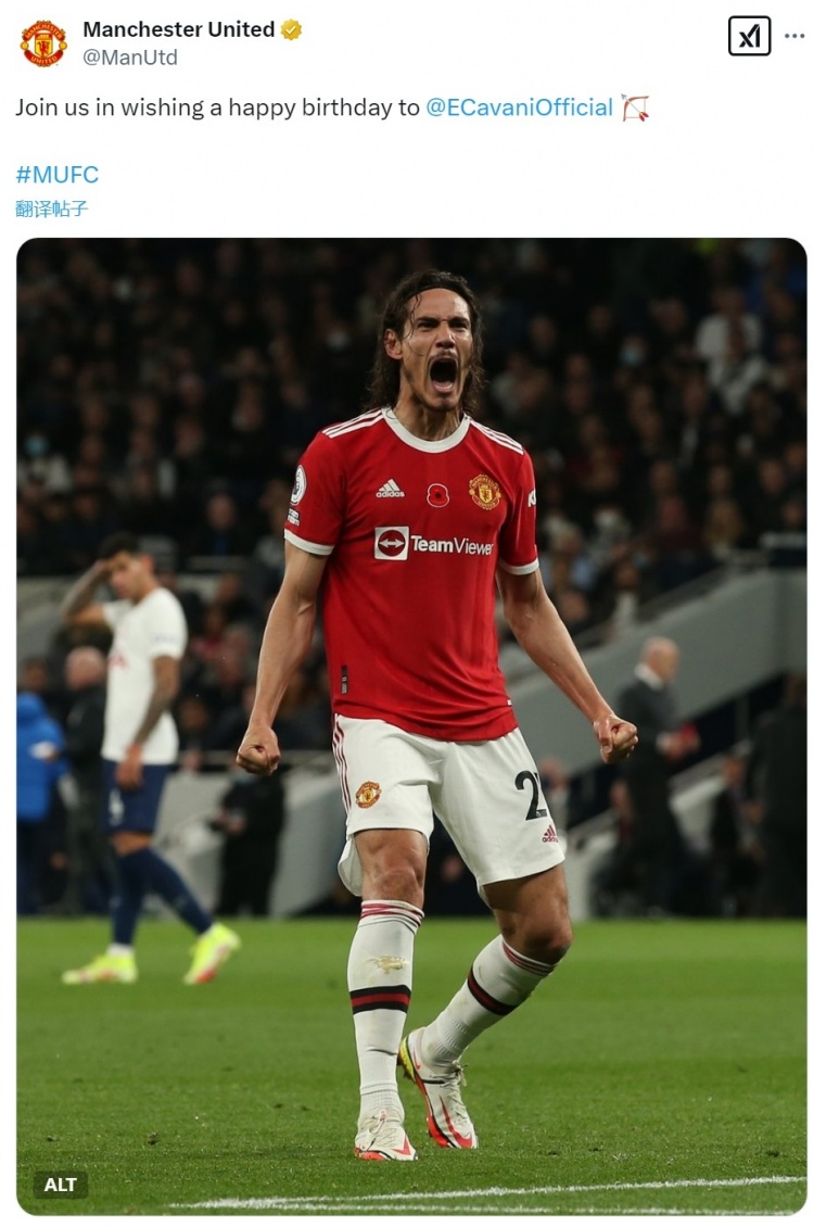 曼聯(lián)官方社媒曬出卡瓦尼效力球隊(duì)時(shí)期的照片,配文:“與我們一起祝卡瓦尼生日快樂(lè)!”