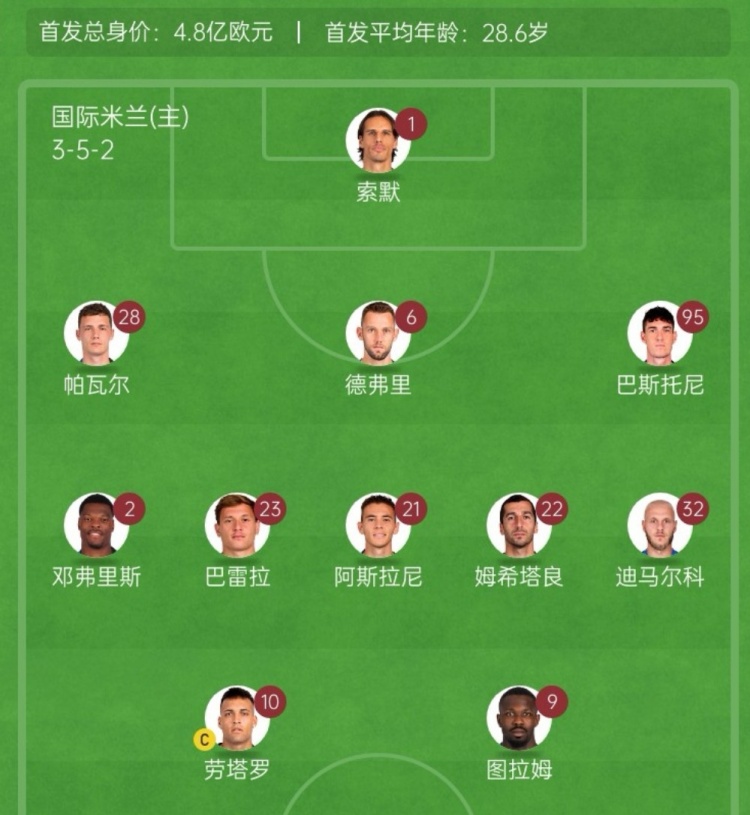 1月30日訊 國米將在本輪歐冠對陣摩納哥,小因扎吉已經(jīng)確定了首發(fā)陣容。