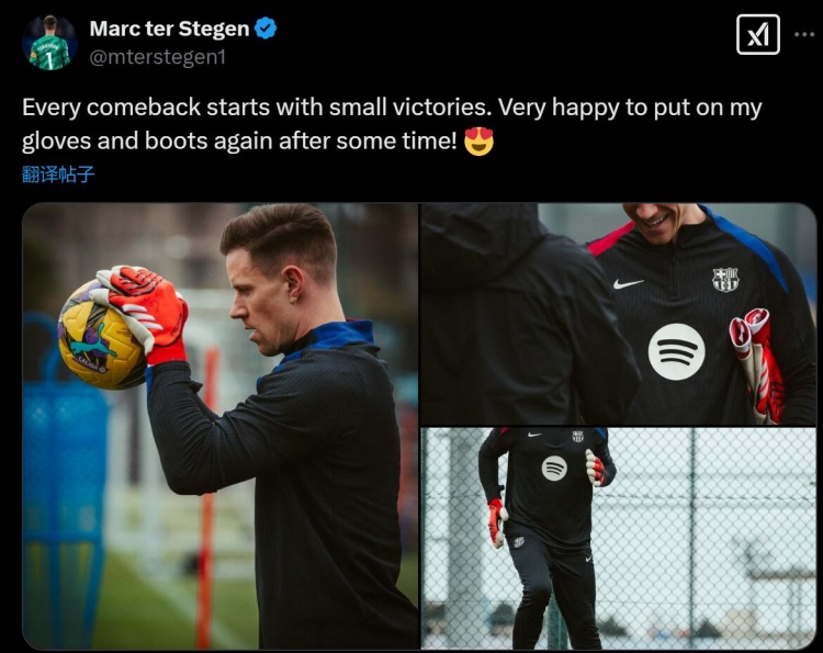 2月16日訊 巴薩門將特爾施特根更新社媒,慶祝自己回到訓(xùn)練場。特爾施特根寫道:“每次回歸都是從小的勝利開始的,很高興我能在時(shí)隔一段時(shí)間后再次穿上門將手套和球鞋!”特爾施特根在去年9月重傷,本賽季只為巴薩出場過7次。 本文標(biāo)簽: 足球 西甲 巴塞羅那