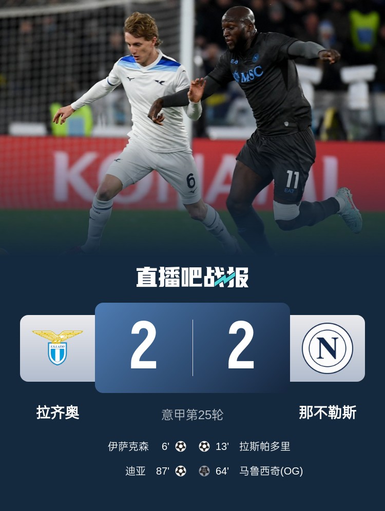 遭絕平!那不勒斯2-2拉齊奧意甲遭遇3連平 多賽1場(chǎng)領(lǐng)先國(guó)米2分