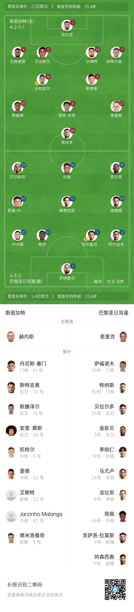1月30日訊 歐冠聯(lián)賽階段第8輪,巴黎圣日耳曼將赴客場(chǎng)vs斯圖加特,賽前首發(fā)名單公布。