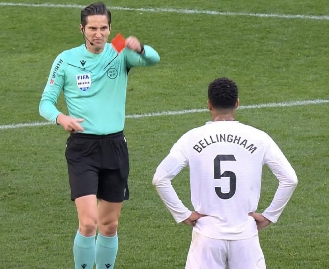 02月16日訊 西甲第24輪,皇馬客場1-1戰(zhàn)平奧薩蘇納,貝林厄姆因對主裁爆粗染紅。裁判報告稱貝林厄姆說的是“fxxk you”,安切洛蒂則表示貝林說的是“fxxk off”。