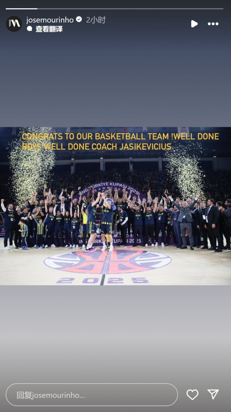 2月17日訊 在土耳其杯決賽中,費內(nèi)巴切籃球隊104-81擊敗貝西克塔斯,獲得冠軍。穆里尼奧更新社媒動態(tài),曬出費內(nèi)巴切籃球隊捧杯的照片,并配文:“祝賀我們的籃球隊!做得好小伙子們,做得好主帥雅西科維丘斯!”穆帥麾下的費內(nèi)巴切足球隊近期也狀態(tài)良好,已經(jīng)取得土超聯(lián)賽7連勝。 本文標簽: 足球 費內(nèi)巴切 穆里尼奧