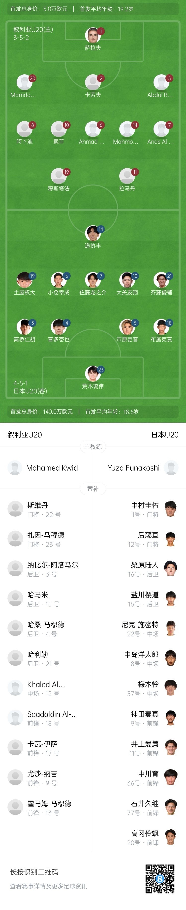2月17日訊 北京時間今天下午15:00,U20亞洲杯D組第二輪敘利亞U20vs日本U20的比賽將打響。