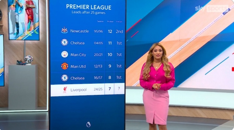 據(jù)天空體育統(tǒng)計(jì),英超此前共有5支球隊(duì)同期領(lǐng)先第二名7分或更多,其中僅1995-1996賽季紐卡未能奪冠。
