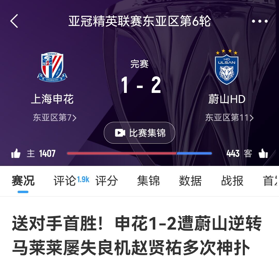 而在對(duì)陣倒數(shù)第二蔚山HD時(shí),申花則是主場(chǎng)不敵對(duì)手,送給對(duì)手本屆亞冠的首勝,也是首個(gè)積分↓