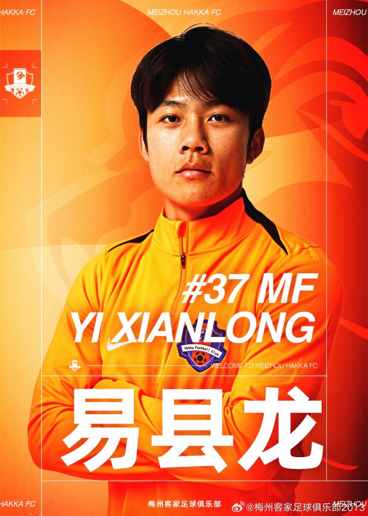 與球員本人友好協(xié)商一致,易縣龍已完成簽約手續(xù),成功加盟梅州客家足球俱樂部,將隨隊征戰(zhàn)2025年中超聯(lián)賽及各項賽事。