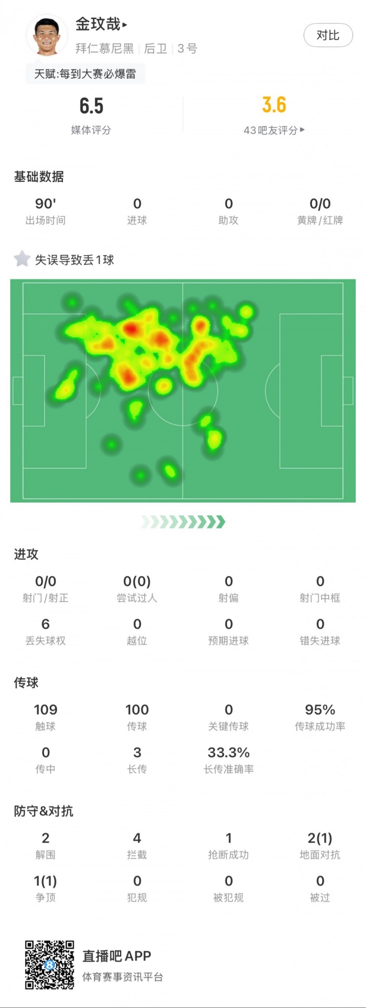 2月19日訊 歐冠附加賽,拜仁主場1-1凱爾特人。金玟哉全場數(shù)據(jù):1次失誤致丟球2次解圍4次攔截1次搶斷109次觸球傳球100次成功95次3次長傳1次成功3次對抗贏得2次6次丟失球權(quán) 本文標(biāo)簽: 足球 德甲 拜仁慕尼黑 歐冠