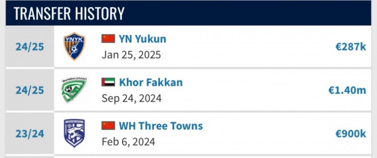 2024年年初,武漢三鎮(zhèn)以90萬歐元的轉(zhuǎn)會費(fèi)引進(jìn)了佩德羅-恩里克。由于在武漢三鎮(zhèn)表現(xiàn)不俗,2024年夏天,武漢三鎮(zhèn)以140萬歐元的價(jià)格將其賣給了阿聯(lián)酋的豪爾費(fèi)坎。效力豪爾費(fèi)坎半賽季后,佩德羅-恩里克重返中超聯(lián)賽,以28.7萬歐元的轉(zhuǎn)會費(fèi)加盟升班馬云南玉昆。短短半個(gè)賽季,豪爾費(fèi)坎在佩德羅-恩里克身上的投資凈虧損超過了百萬歐元。