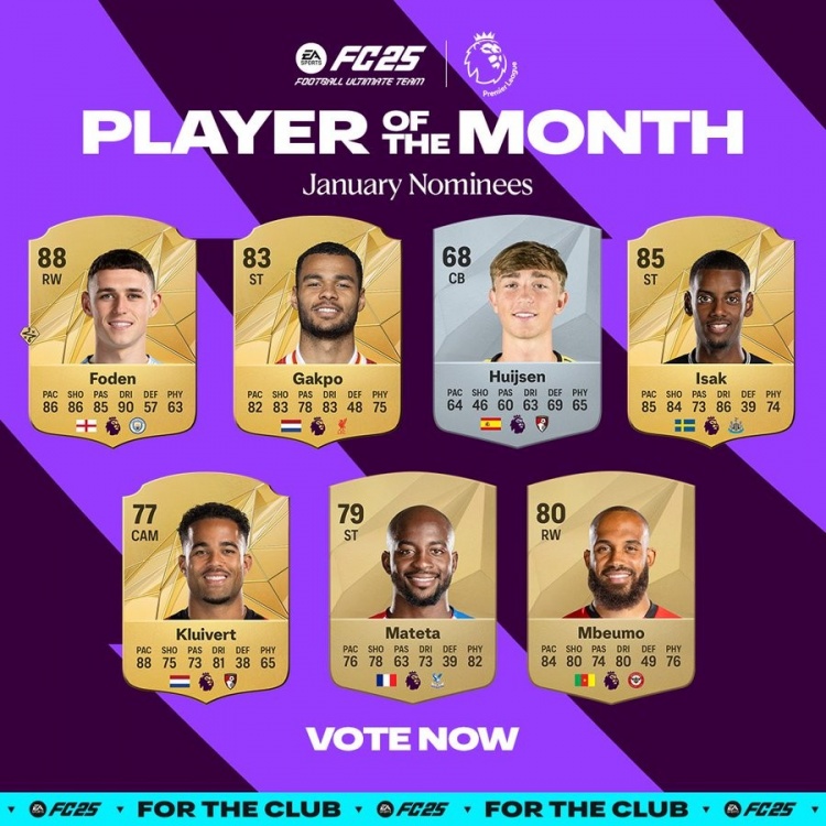 1月30日訊 英超官方公布了1月最佳球員候選7人名單,狀態(tài)出色的福登和加克波領(lǐng)銜。