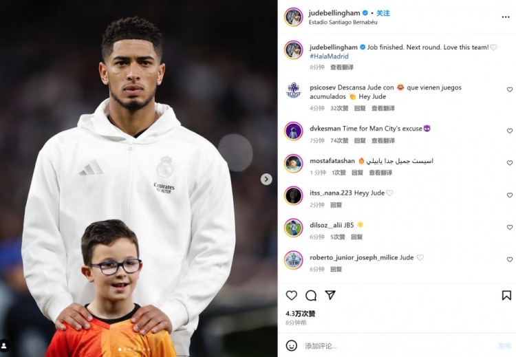 2月20日訊 皇馬在本輪歐冠3-1擊敗曼城,得以挺進(jìn)歐冠16強(qiáng)戰(zhàn),貝林厄姆首發(fā)踢滿全場(chǎng)。貝林厄姆也在賽后通過(guò)社媒曬出自己的比賽照,并配文:“任務(wù)完成!晉級(jí)下一輪。我愛(ài)這支球隊(duì)!” 本文標(biāo)簽: 足球 西甲 皇家馬德里 英超 曼城 歐冠