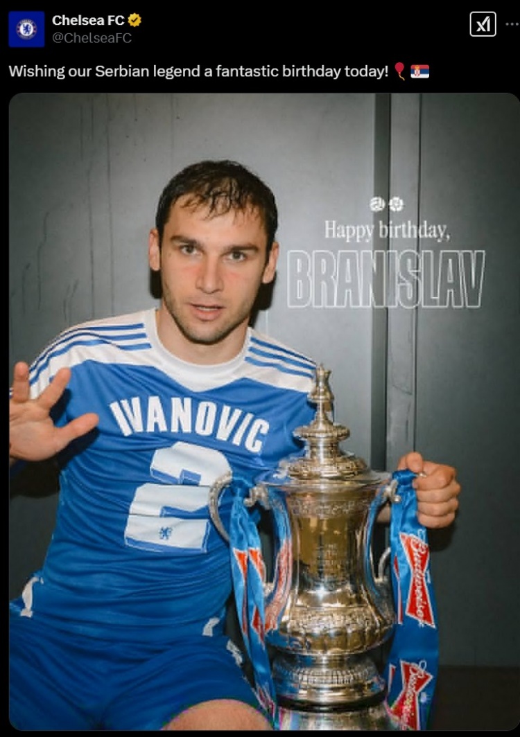 2月22日訊 今天是前塞爾維亞國(guó)腳伊萬(wàn)諾維奇41歲生日,切爾西官推也曬出其昔日身披藍(lán)軍戰(zhàn)袍捧杯的照片,為其送上生日祝福。