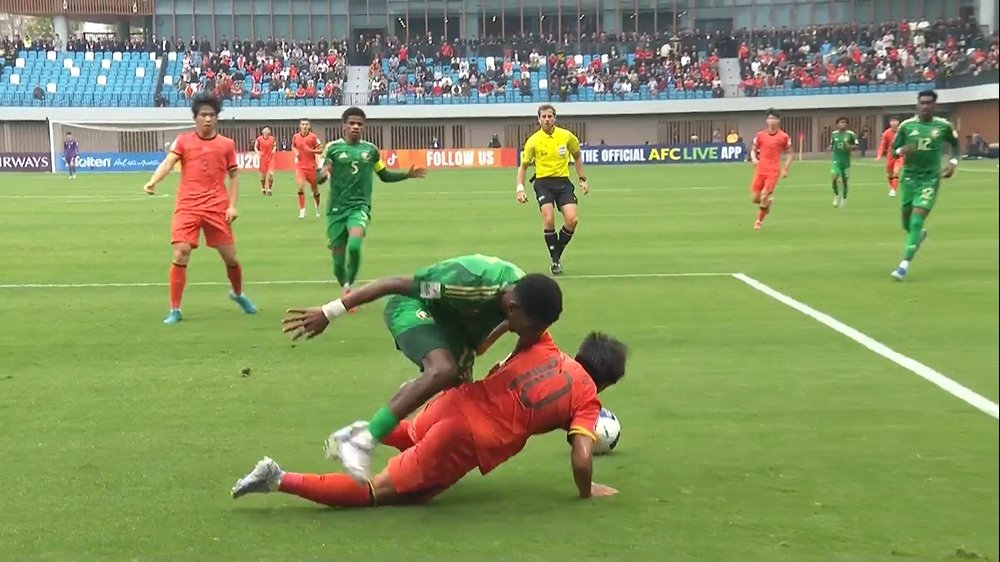 02月22日訊U20亞洲杯1/4決賽,中國(guó)vs沙特,比賽第17分鐘,蒯紀(jì)聞禁區(qū)內(nèi)護(hù)球,被沙特球員身后“摁倒”,裁判示意沒犯規(guī)。 本文標(biāo)簽: 足球 中超 中國(guó)足球 國(guó)家隊(duì)