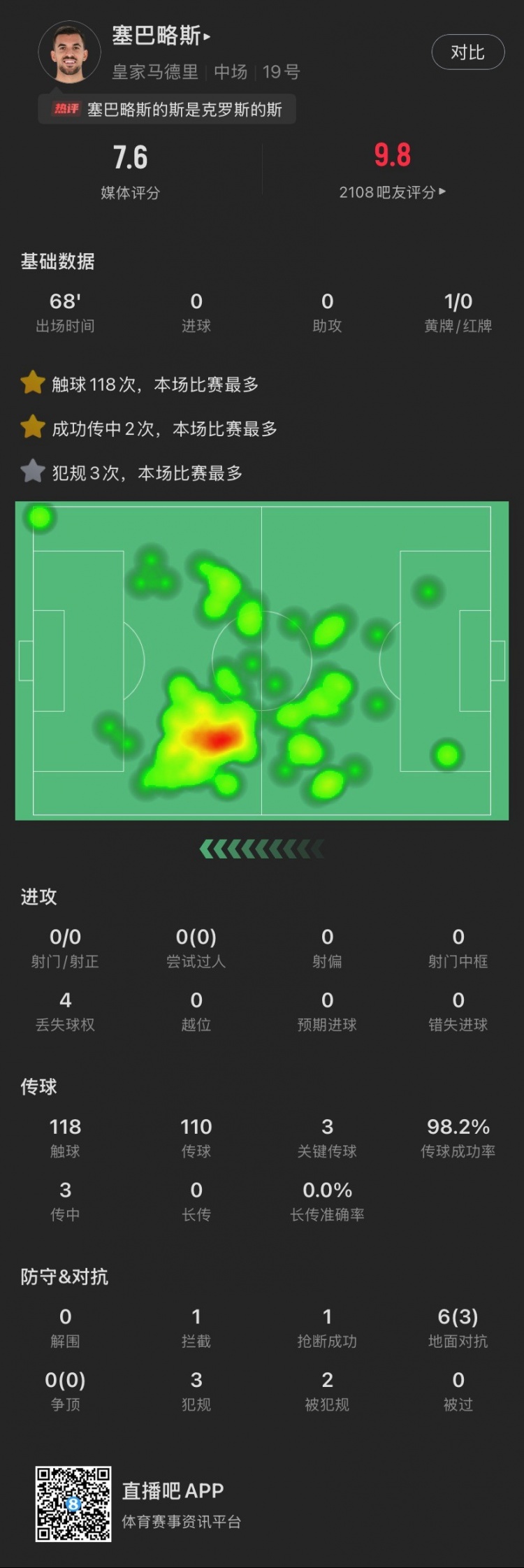 塞巴略斯本場(chǎng)主要數(shù)據(jù)↓