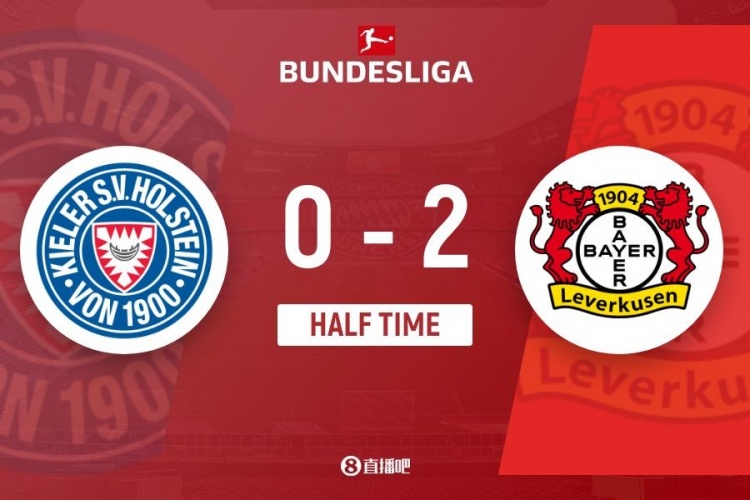 上半場(chǎng)比賽結(jié)束,勒沃庫(kù)森2-0荷爾斯泰因基爾。