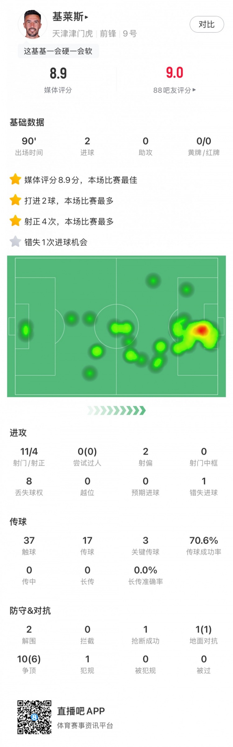 2月23日訊 今天下午進(jìn)行的新賽季中超首輪比賽,主場作戰(zhàn)的津門虎,在兩球落后的不利形勢下,依靠基萊斯在比賽最后時刻的兩個進(jìn)球,2-2艱難戰(zhàn)平梅州客家。梅開二度的基萊斯也成為了本場比賽表現(xiàn)最為搶眼的球員。