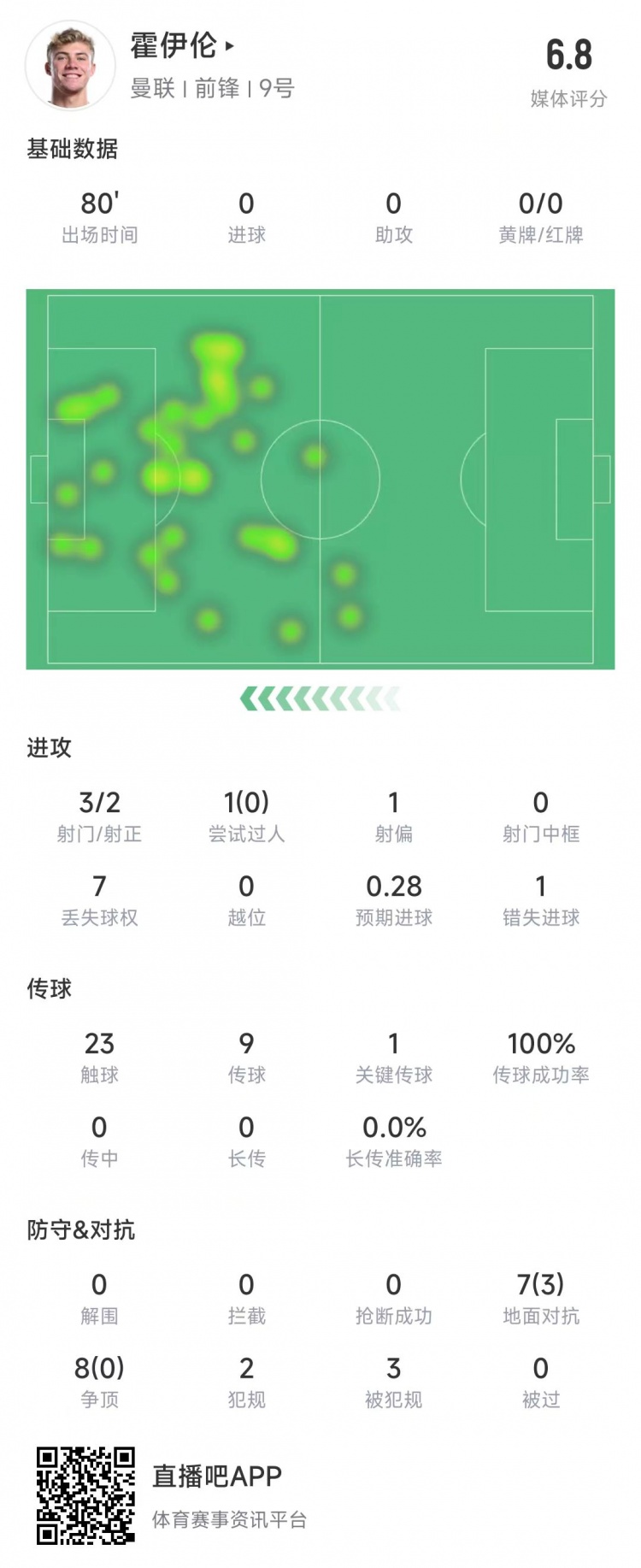 霍伊倫本場比賽數(shù)據(jù):