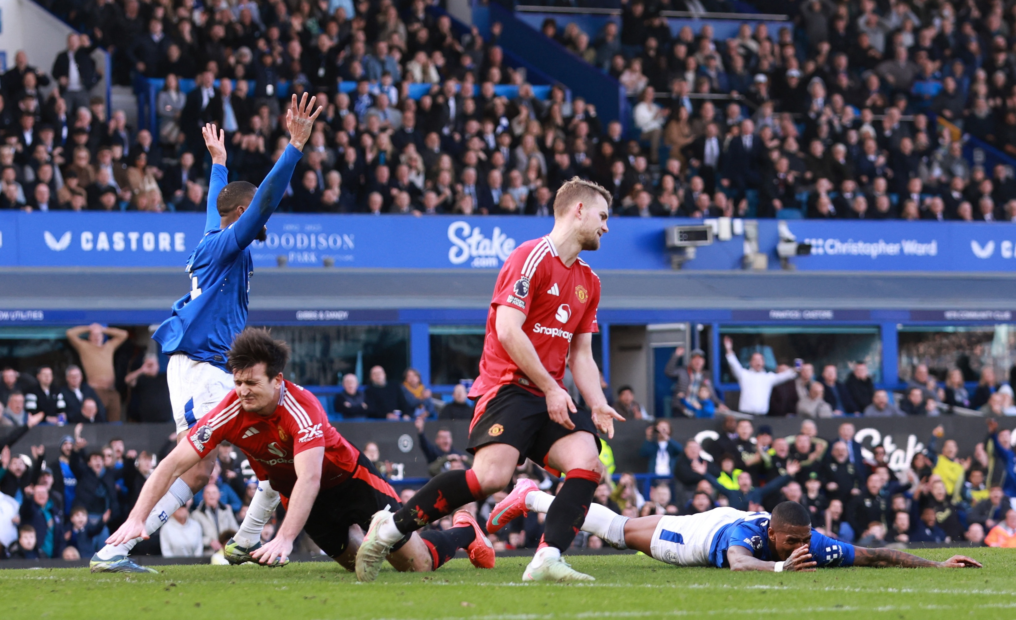 首次危機出現(xiàn)在第5分鐘:達洛特滑稽解圍失誤,皮球隨即擊中卡塞米羅面部反彈。不久后,馬茲拉維接受治療后返場,與馬奎爾爭頂同一高空球時遭隊友疑惑注視。埃弗頓借機組織進攻,貝托頭球考驗奧納納。這并非曼聯(lián)球員最后一次高空球自亂陣腳。