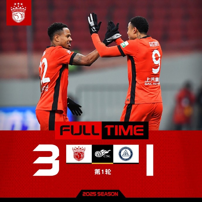 2025賽季中超聯(lián)賽第1輪,上海海港3比1深圳新鵬城。上半場(chǎng)第3分鐘,茹薩在角球進(jìn)攻中破門,打入球隊(duì)新賽季中超首球!半場(chǎng)結(jié)束雙方戰(zhàn)成1比0。易邊再戰(zhàn),第62分鐘,徐新送出妙傳,古斯塔沃單刀破門!第80分鐘,安永佳為深圳隊(duì)打入一球。補(bǔ)時(shí)階段,古斯塔沃造點(diǎn)并且自己主罰命中,將比分鎖定為3比1,海港隊(duì)取得聯(lián)賽開門紅!感謝親愛(ài)的球迷朋友們?nèi)珗?chǎng)比賽不遺余力的吶喊,勝利屬于海港大家庭的每一位成員。下一場(chǎng)比賽,海港隊(duì)將于2月28日主場(chǎng)迎戰(zhàn)長(zhǎng)春亞泰,我們不見不散!