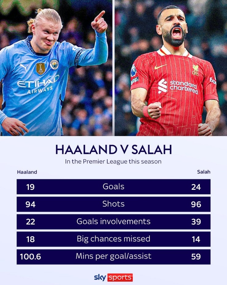 天空體育也對(duì)比了本賽季英超哈蘭德與薩拉赫的數(shù)據(jù),后者在參與進(jìn)球效率優(yōu)勢(shì)明顯,具體如下: