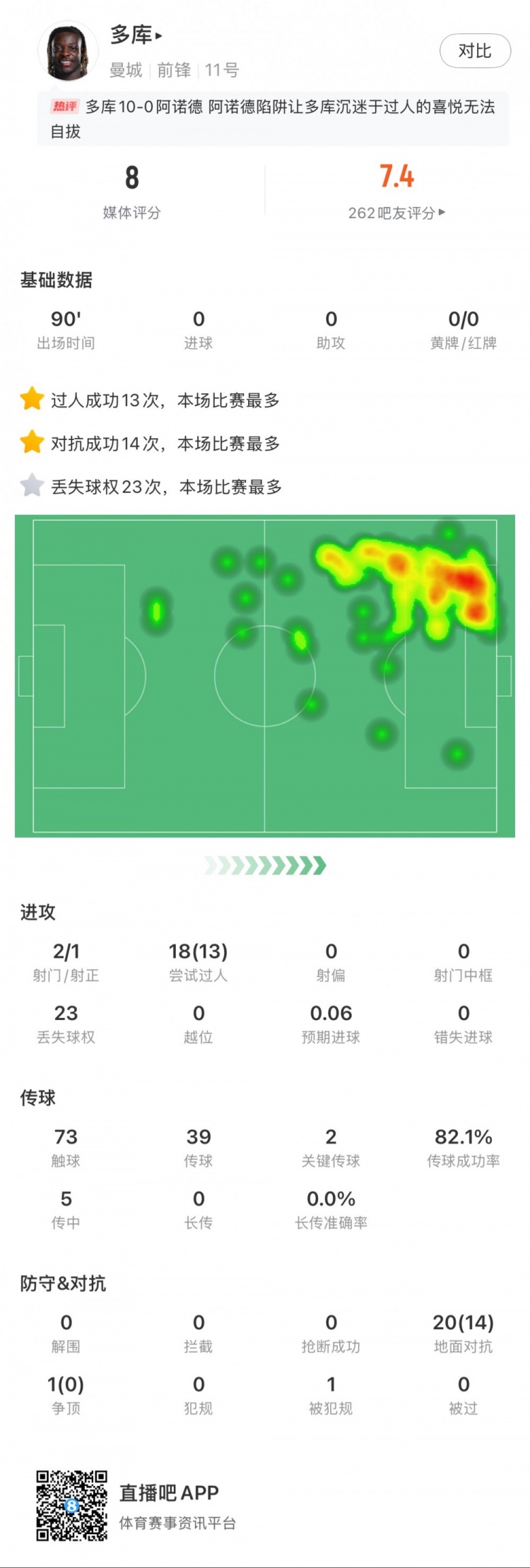 2月24日訊 本輪英超,曼城0-2利物浦。多庫本場數(shù)據(jù):18次過人13次成功73次觸球39次傳球32次成功2次關(guān)鍵傳球5次傳中0次成功2次射門1次射正20次地面對抗贏得14次1次爭頂未贏得23次丟失球權(quán)1次被犯規(guī) 本文標(biāo)簽: 足球 英超 曼城