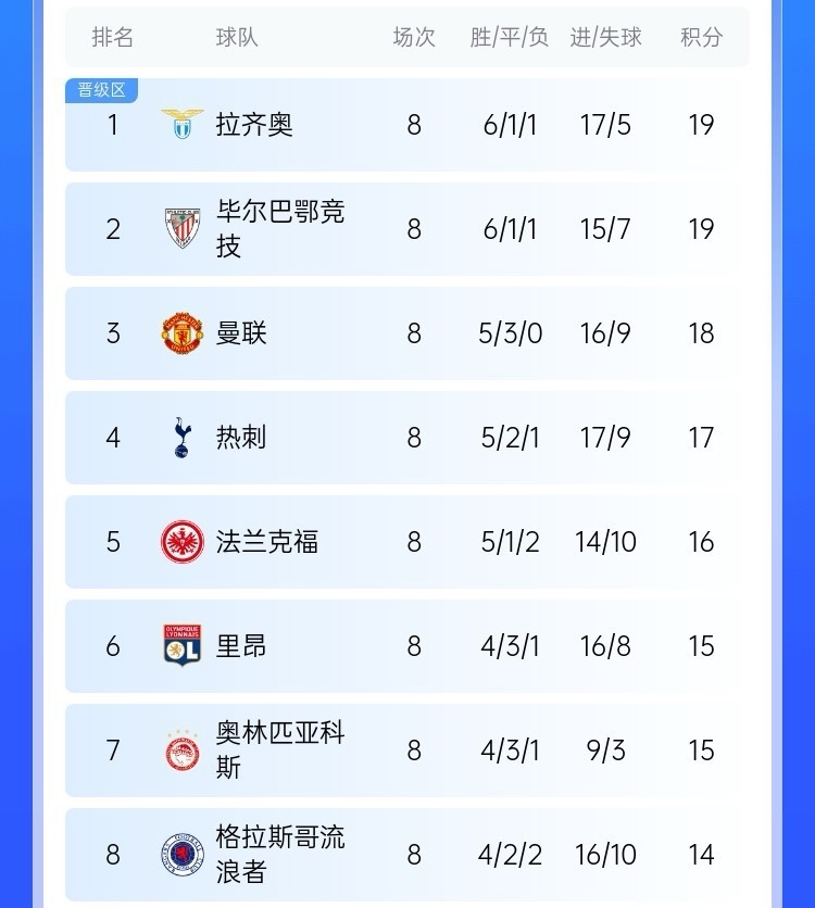 01月31日訊 歐聯(lián)杯聯(lián)賽階段全部結(jié)束,紅魔曼聯(lián)最終以不敗的戰(zhàn)績高居積分榜第3位。