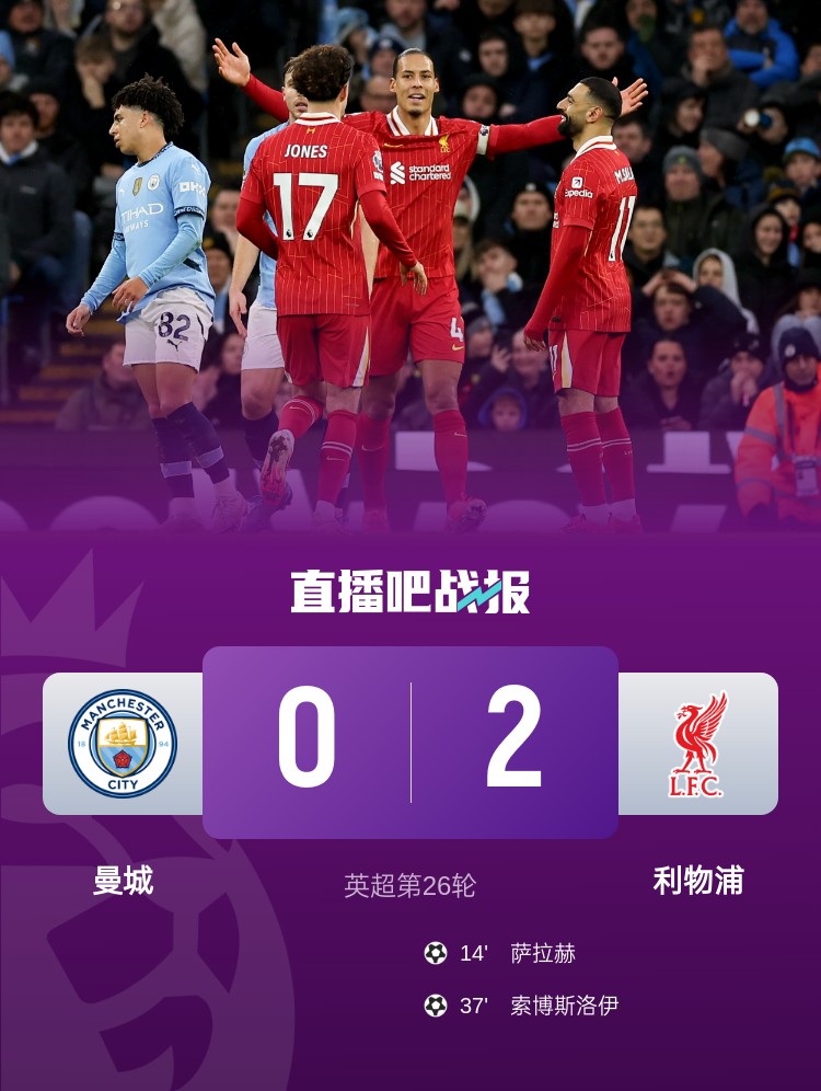 2月24日訊 英超第26輪迎來(lái)曼城與利物浦的焦點(diǎn)戰(zhàn),最終主場(chǎng)作戰(zhàn)的曼城0-2不敵對(duì)手。