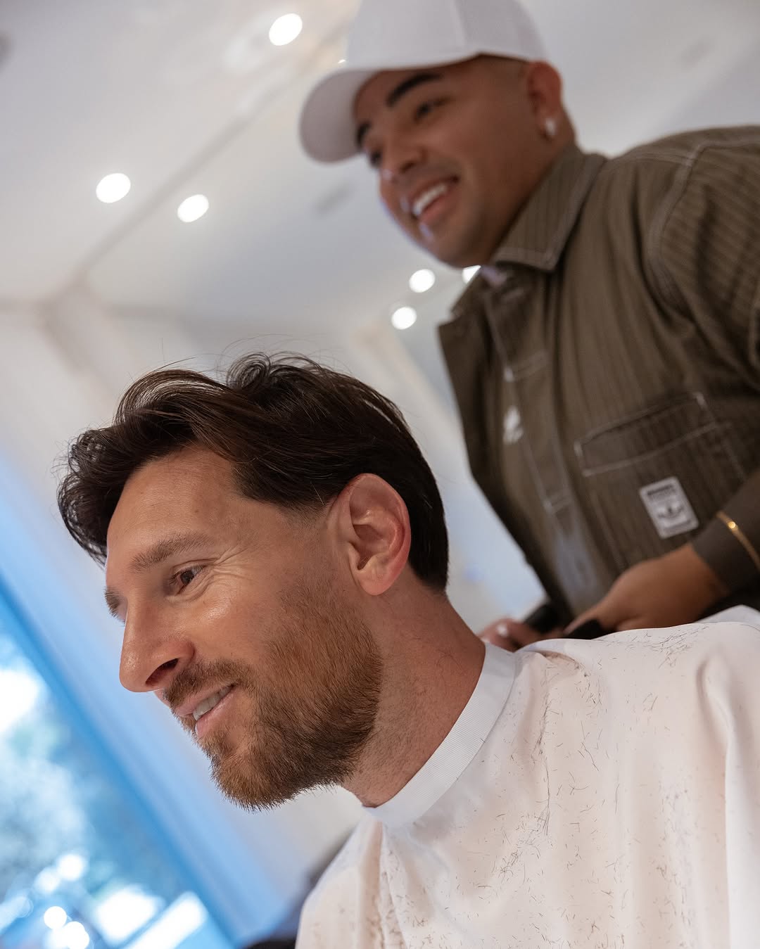 今日發(fā)型師曬照,為梅西修了修頭發(fā)。