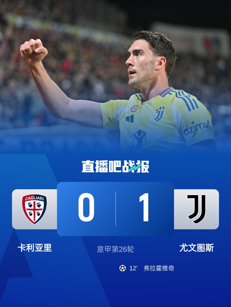 意甲第26輪,尤文1-0卡利亞里,聯(lián)賽4連勝。上半場,弗拉霍維奇過掉門將小角度破門;下半場,坎比亞索傷退,替補(bǔ)出場僅20分鐘的道格拉斯-路易斯也傷退。