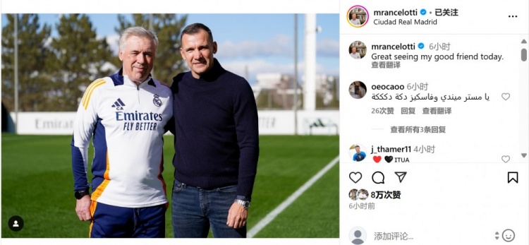 1月31日訊 烏克蘭傳奇球星舍甫琴科今日來(lái)到皇馬訓(xùn)練基地探班,并與恩師安切洛蒂親切交談。安切洛蒂也在個(gè)人社媒曬出與舍甫琴科的合照,配文寫道:“很高興今天與我的好友相聚!” 本文標(biāo)簽: 足球 皇家馬德里 西甲