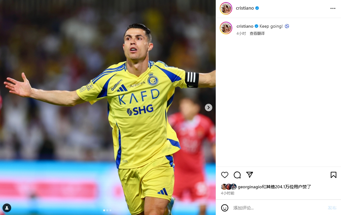 2月26日訊 在今天凌晨結束的沙特聯(lián)賽中,利雅得勝利在客場2-0戰(zhàn)勝了麥加統(tǒng)一。C羅賽后在社媒上曬出了自己的比賽照片,并配文“繼續(xù)努力”。在本次比賽中,C羅貢獻了一粒進球并且還創(chuàng)造了一個點球,但他把這個機會讓給了隊友馬內(nèi),幫助他打破了進球荒。并且,C羅也憑借自己優(yōu)異的表現(xiàn)榮膺了本場比賽的最佳球員。 本文標簽: 足球 利雅得勝利 C羅