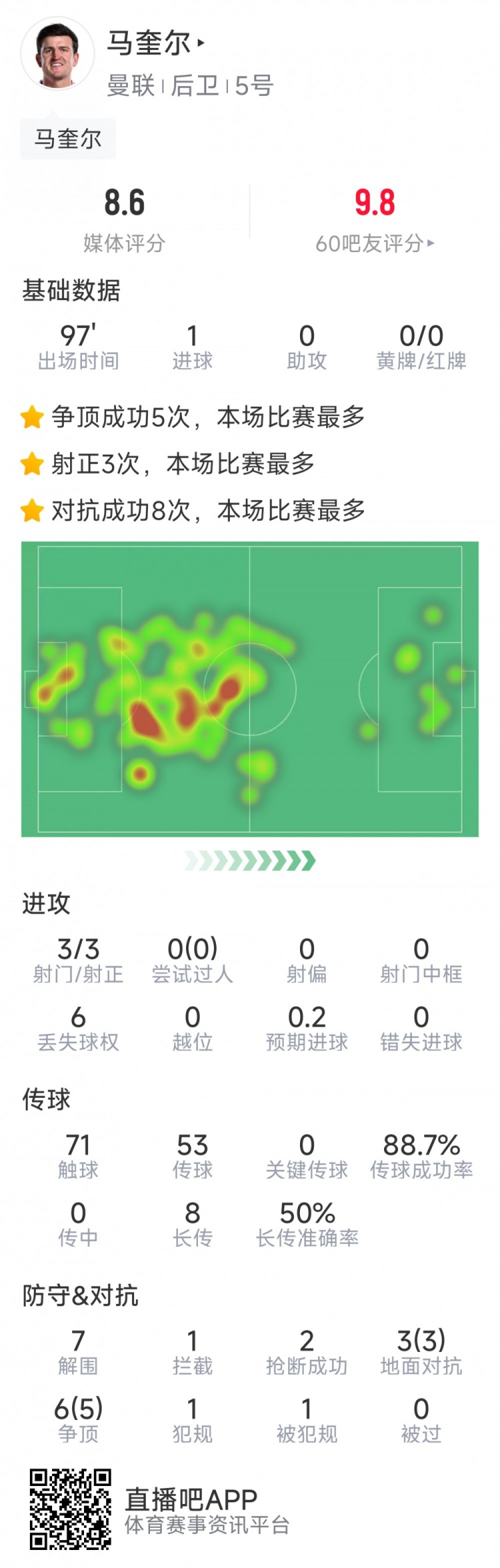2月27日訊 在本輪英超,曼聯(lián)3-2擊敗伊普斯維奇。馬奎爾打進(jìn)關(guān)鍵進(jìn)球,以下為他在本場(chǎng)數(shù)據(jù):比賽時(shí)間90分鐘1粒進(jìn)球3次射門(mén)均射正71次觸球傳球成功率88.7%7次解圍2次搶斷9次對(duì)抗8次成功評(píng)分8.6分 本文標(biāo)簽: 足球 英超 曼聯(lián)