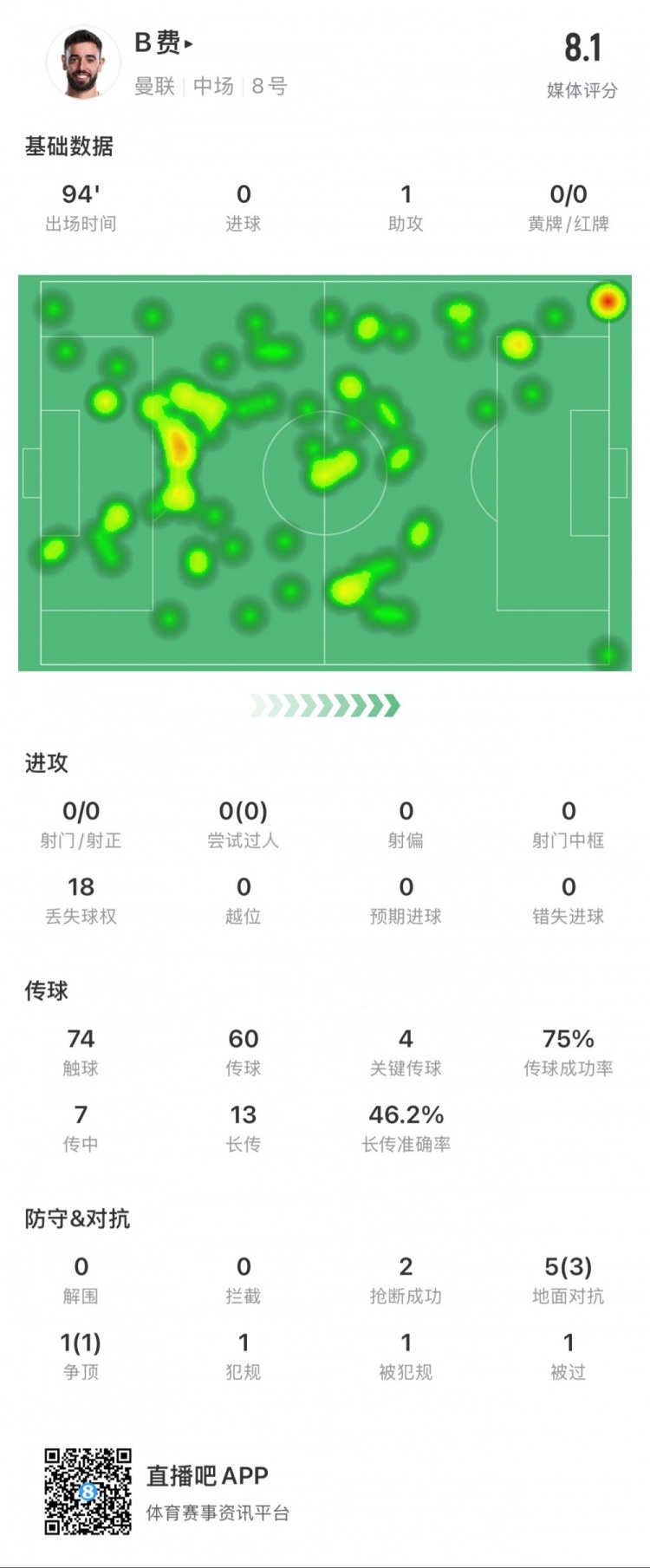 2月27日訊 本輪英超,曼聯(lián)3-2伊鎮(zhèn)。B費全場數(shù)據(jù):1次助攻81次觸球64次傳球49次成功4次關鍵傳球8次傳中4次成功14次長傳7次成功1次創(chuàng)造得分機會0次射門6次地面對抗贏得4次1次爭頂贏得1次19次丟失球權1次犯規(guī)2次被犯規(guī)1次封堵射門2次搶斷1次被過 本文標簽: 足球 英超 曼聯(lián) B費