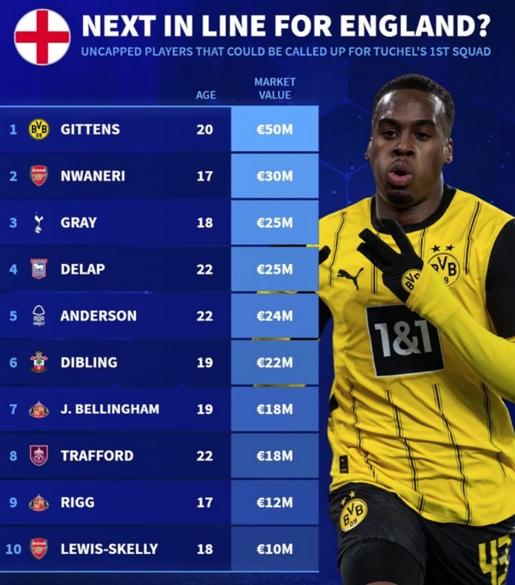 2月27日訊 《轉(zhuǎn)會(huì)市場(chǎng)》統(tǒng)計(jì)了當(dāng)前仍未被征召的英格蘭球員最貴身價(jià)情況,多特邊鋒吉滕斯領(lǐng)銜。
