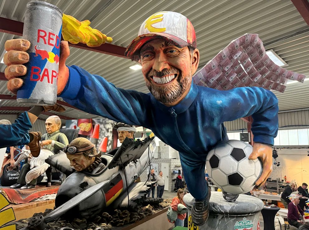 據(jù)報(bào)道,該彩車上是前美因茨球員和教練克洛普的身影,他的翅膀是用鈔票做成的,手里拿著一罐紅牛標(biāo)志性的能量飲料和一個(gè)足球。彩車側(cè)面還寫道:“對(duì)于克洛普來說,他不再關(guān)心那些曾經(jīng)很重要的價(jià)值觀。由于紅牛用大量金錢誘惑他,他現(xiàn)在正從自己的寶座上跌落下來?!?/p>