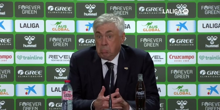 3月2日訊 西甲第26輪,皇馬客場1-2遭皇家貝蒂斯逆轉(zhuǎn)。賽后,皇馬主帥安切洛蒂出席新聞發(fā)布會(huì)。