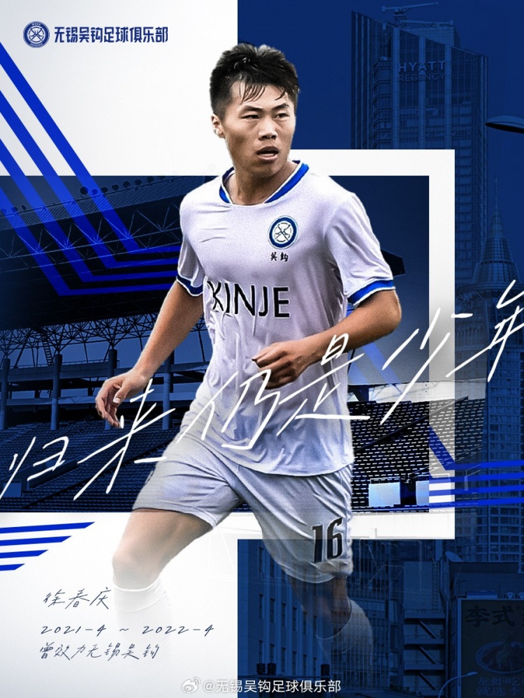 我們?cè)诖肃嵵匦?,?jīng)雙方協(xié)商一致,球員徐春慶加盟無(wú)錫吳鉤足球俱樂(lè)部。2025賽季,他將為無(wú)錫而戰(zhàn)!