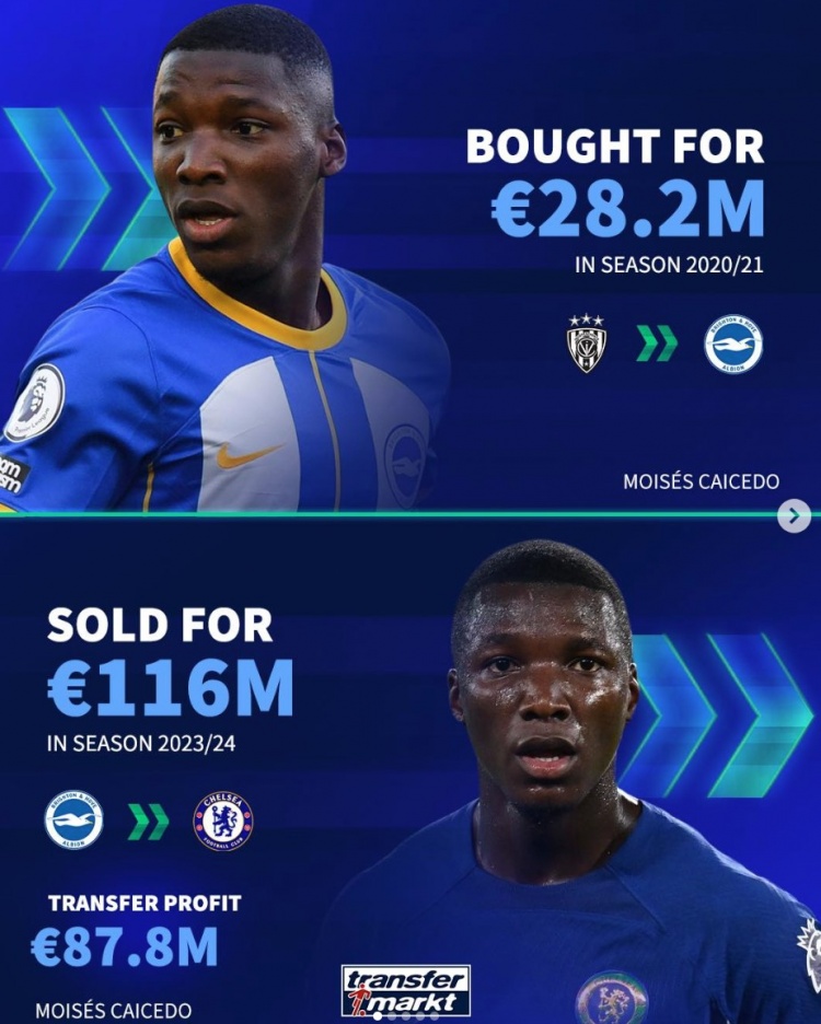 3月3日訊 《轉(zhuǎn)會市場》統(tǒng)計了布萊頓近年的5筆低買高賣轉(zhuǎn)會操作,共計凈賺超過2億歐元。