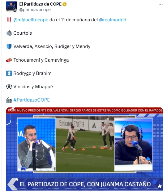 03月04日訊 歐冠1/8決賽首回合,皇馬明天凌晨4點將主場迎戰(zhàn)馬競,但科貝電臺已經提前透露了皇馬首發(fā)。科貝電臺透露皇馬首發(fā):庫爾圖瓦、巴爾韋德、勞爾-阿森西奧、呂迪格、門迪、瓊阿梅尼、卡馬文加、羅德里戈、迪亞斯、維尼修斯、姆巴佩 本文標簽: 足球 西甲 皇家馬德里 馬德里競技 歐冠