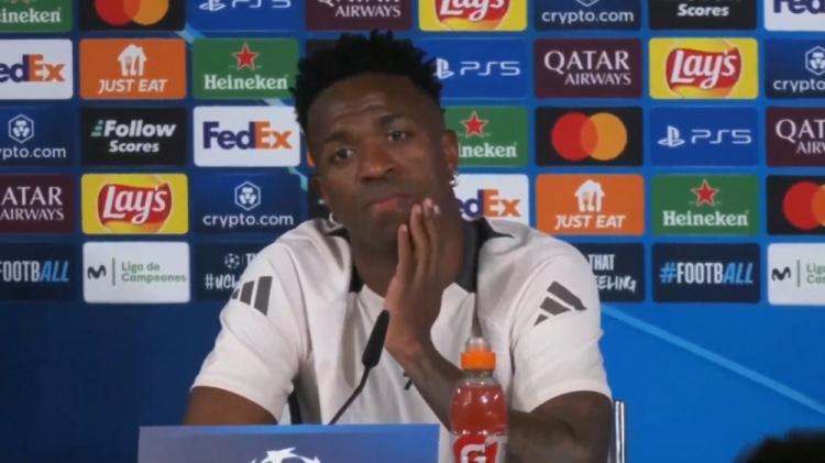 維尼修斯出席對陣馬競的新聞發(fā)布會(huì),期間被問了金球獎(jiǎng)的話題。