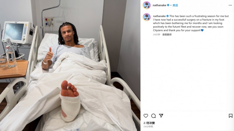 曼城后防大將阿克在今日通過社媒曬出自己術(shù)后的照片,表示自己已經(jīng)成功接受手術(shù)。
