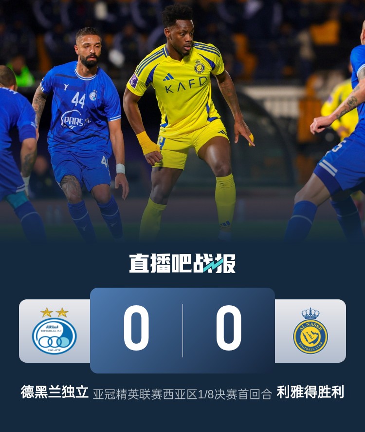 杜蘭屢失良機(jī)、C羅缺陣,利雅得勝利客場0-0戰(zhàn)平德黑蘭獨(dú)立。