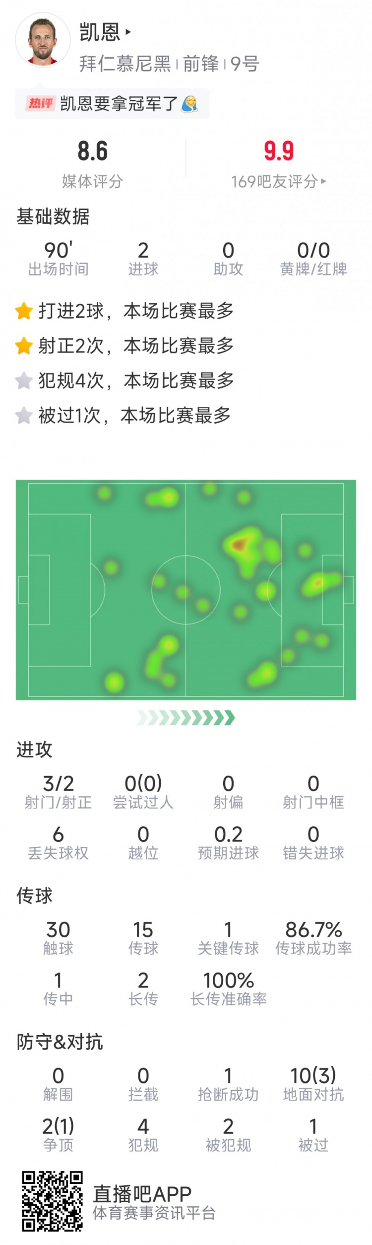 3月6日訊 在本輪歐冠拜仁3-0擊敗勒沃庫森的比賽中,凱恩梅開二度。以下為他在本場數(shù)據(jù):比賽時間90分鐘2粒進球3次射門2次射正30次觸球1次關(guān)鍵傳球傳球成功率86.7%1次搶斷12次對抗4次成功評分8.6分 本文標簽: 足球 德甲 拜仁慕尼黑