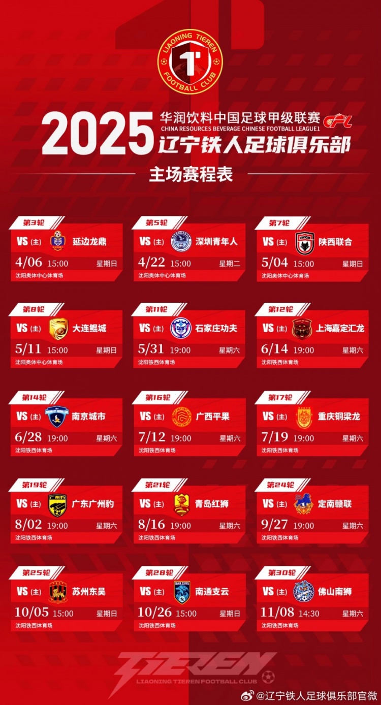 2025賽季遼寧鐵人一線隊大名單、主場賽程
