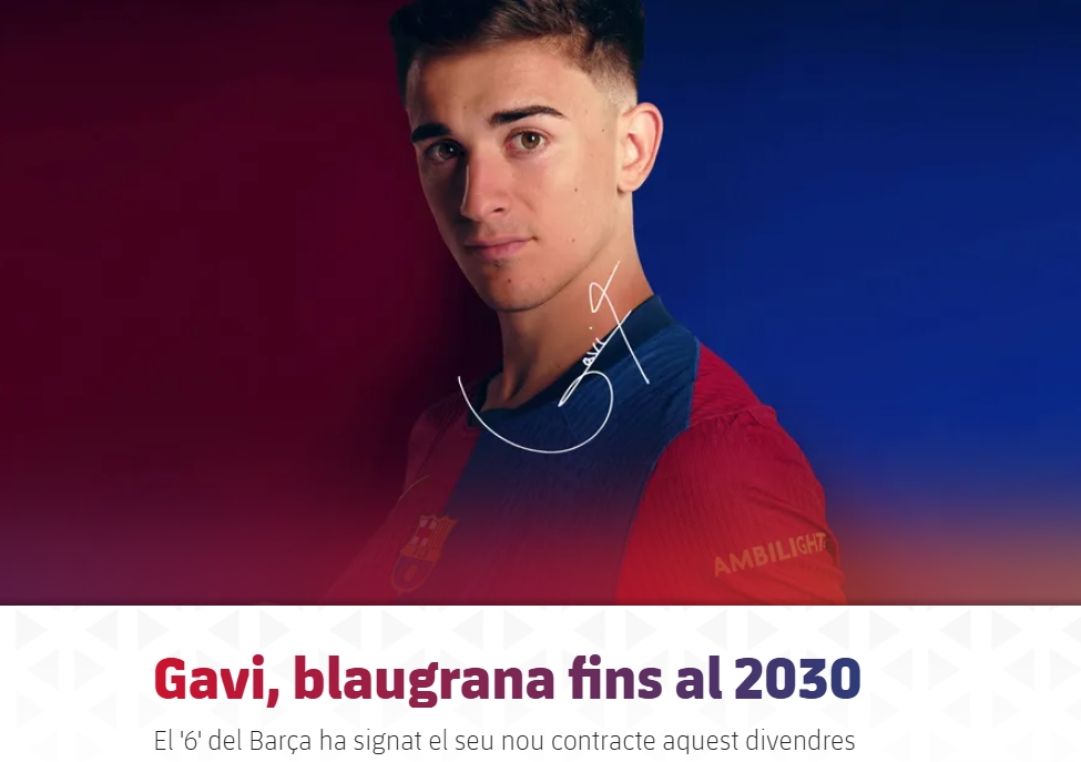 巴塞羅那足球俱樂部與球員加維就續(xù)約達(dá)成協(xié)議,他將在俱樂部效力至2030年6月30日。