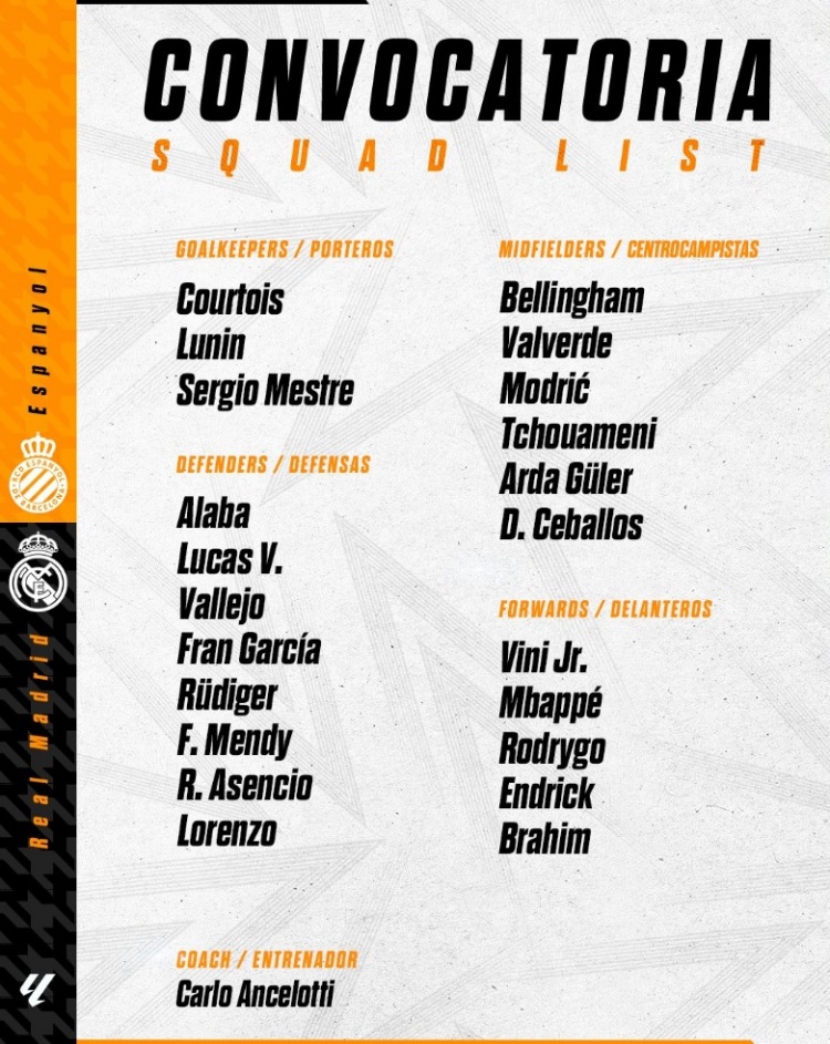 前鋒:維尼修斯、姆巴佩、羅德里戈、恩德里克、卜拉欣-迪亞斯