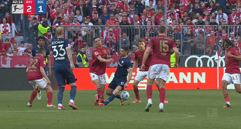03月08日訊 德甲第25輪,拜仁vs波鴻,比賽第43分鐘,帕利尼亞出球后蹬踏到對(duì)手的腳踝,裁判出示紅牌將其罰下。