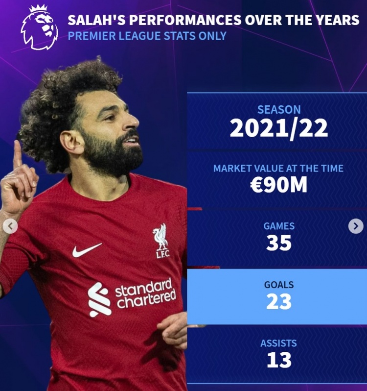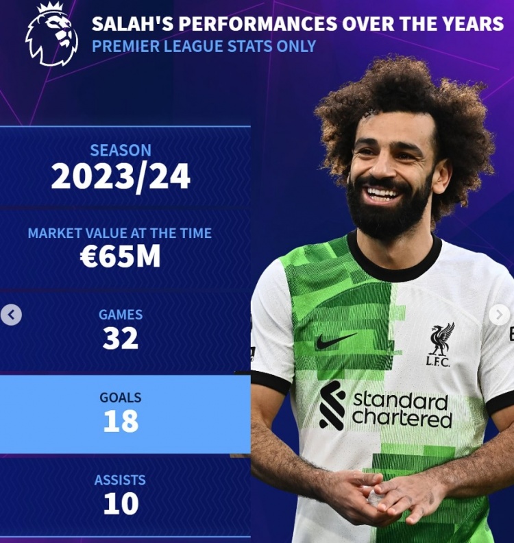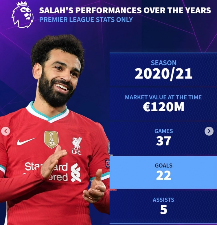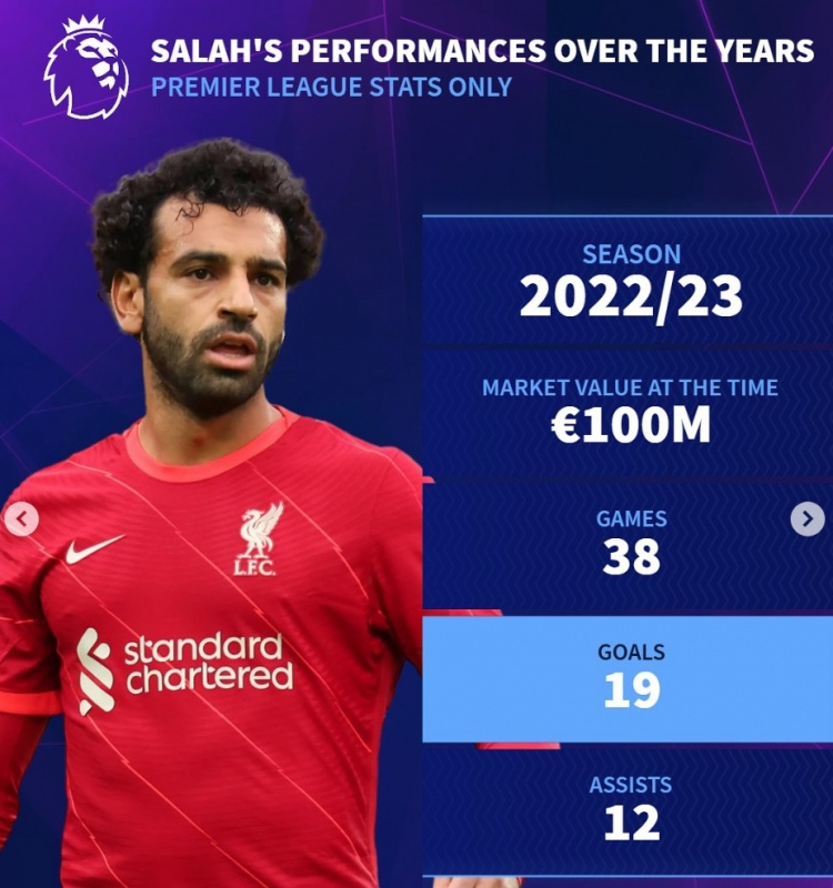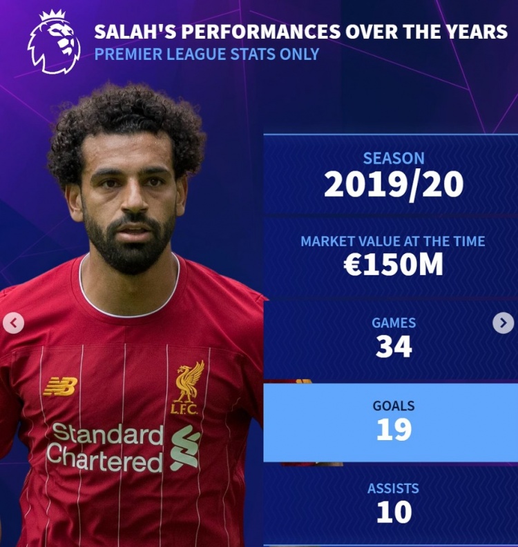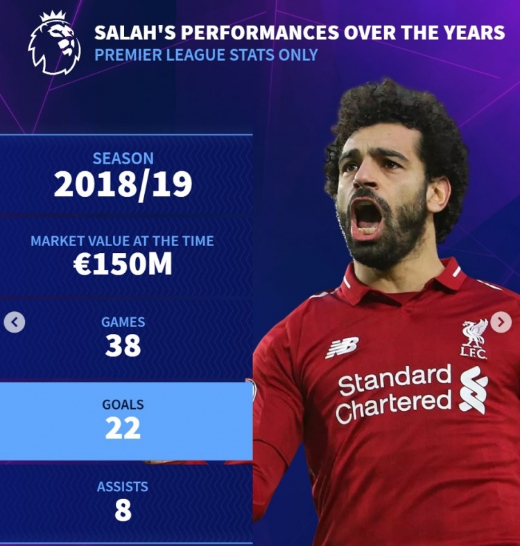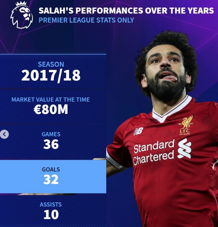 3月8日訊 利物浦在本賽季英超領(lǐng)跑,薩拉赫的出色狀態(tài)功不可沒,《轉(zhuǎn)會市場》也列出了薩拉赫歷年英超數(shù)據(jù)情況。